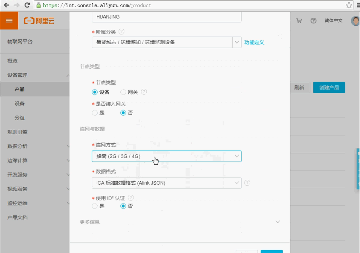 比如说我们现在做一款 环境采集数据的产品,我们可以创建一个产品,比如说我们创建一个产品叫