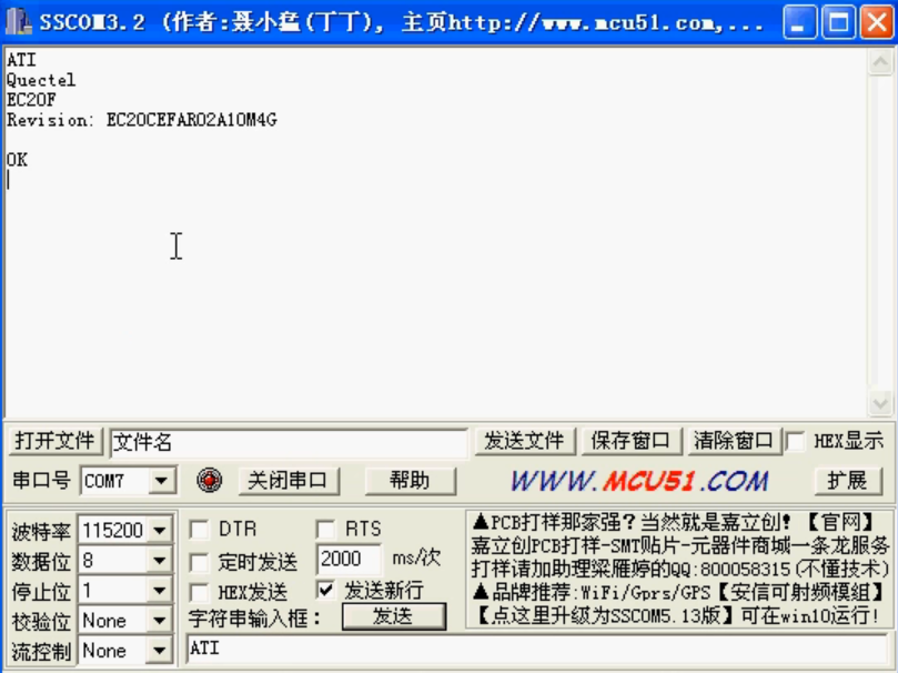 我们需要给模块做一个激活,如果反馈1 表明模块终端入网