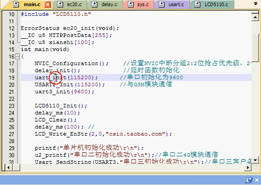 LCD5110_Init的一个显示函数,这个我们没有接,看串口信息,看调试信息就可以了,