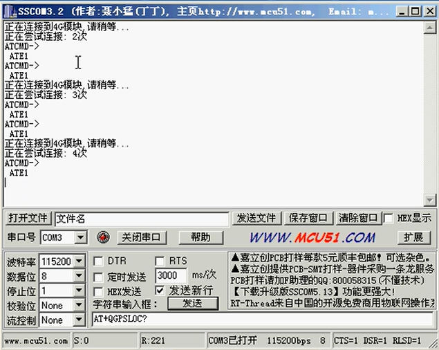 直接返回了错误,一会用电信卡来测试一下,因为他需要查询到他的基站库,