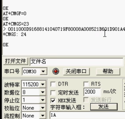 不要发送新行 不要HEX发送,要求非常严格,多一个字节少一个字节 多一个字符少一个字符,都会错的发送过去 发1A不需要回车 打勾HEX发送,因为这个时候是16进制