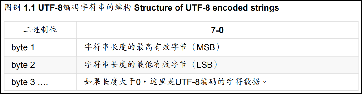 前两个字节表示后面字符串的长度,后面是字符串的UTF-8格式的字符数据;