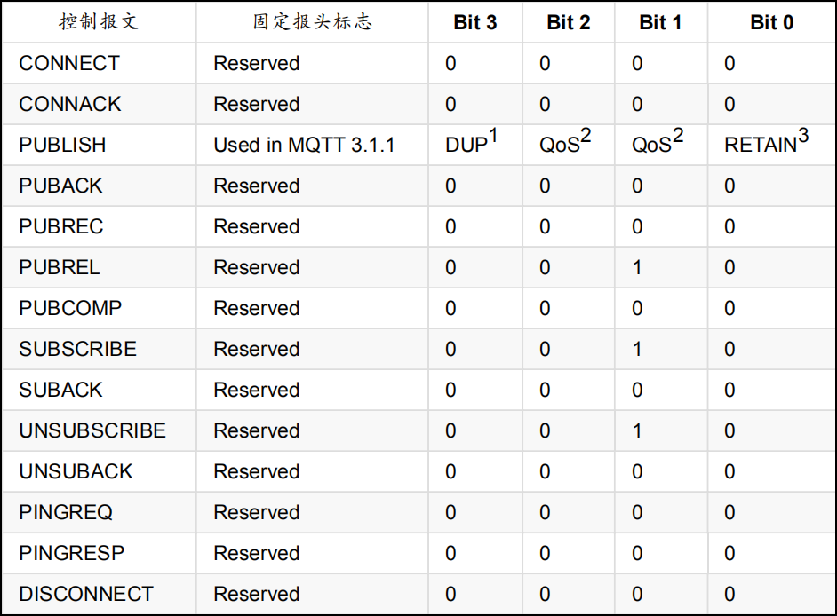 除发布PUBLISH外,其余报文类型标志位都是与报文类型直接一一对应的;