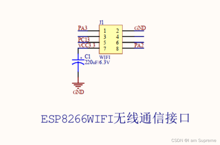 根据原理图可以看到,ESP8266是通过PA2 PA3这个串口进行通讯,PA13是控制它的复位,
