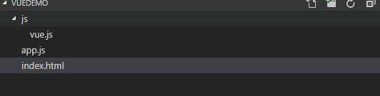 下载vue.js文件放在 js目录下,在根目录创建index.html文件,项目文件结构如下