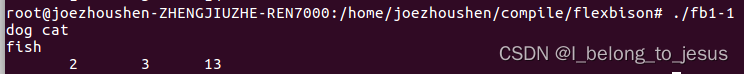 会生成文件:fb1-5.tab.h 和 fb1-5.tab.c,在flex文件中调用该头文件即可以实现联合编译,最后生成可执行程序fb1-5,测试结果如下: