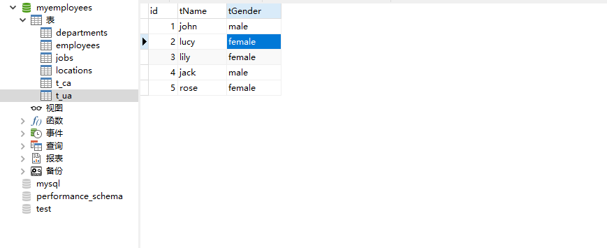 select id,tName ,tGender from t_ua where tGender='male';