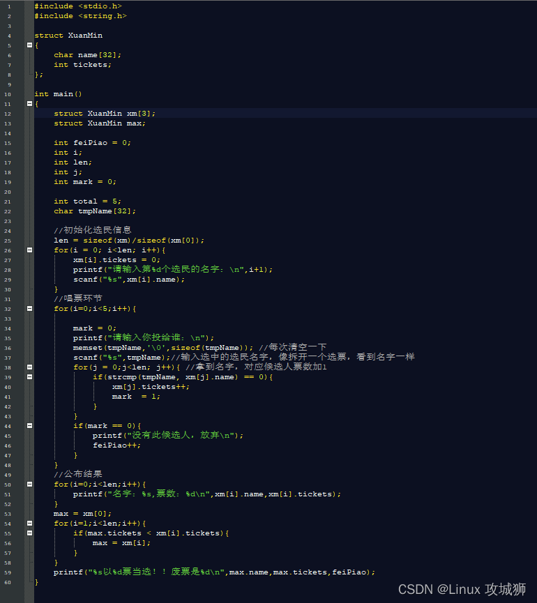 结构体数组结合之选票系统