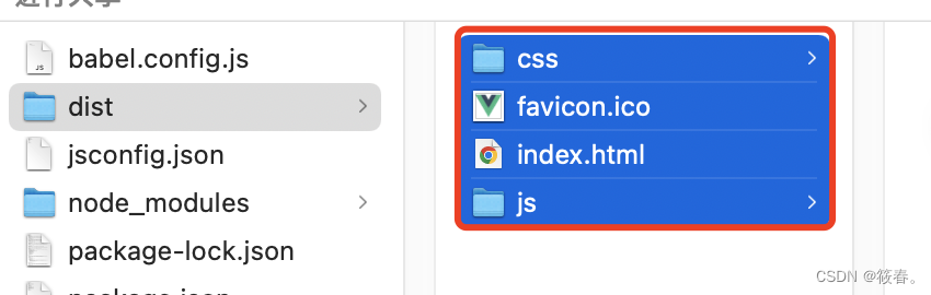 2. 将打包好生成的dist文件夹中的文件 放置到配置的默认路径中