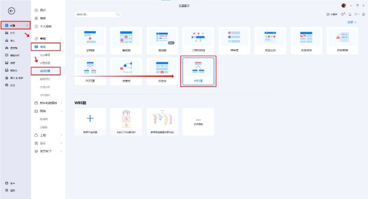 打开亿图图示,依次选择【新建>商务>项目管理>WBS图】