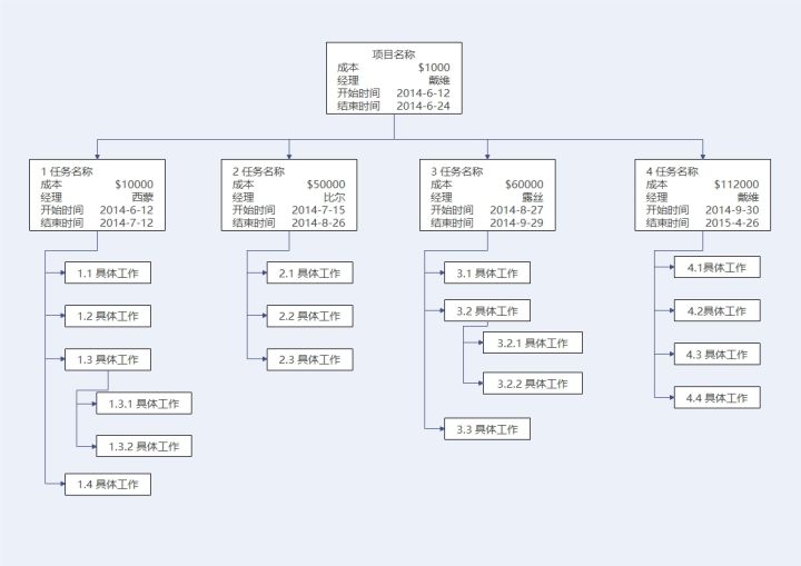 项目拆解由宏观拆解至微观,随着任务越细化信息越详实,每项任务细分至不能再细分为止;