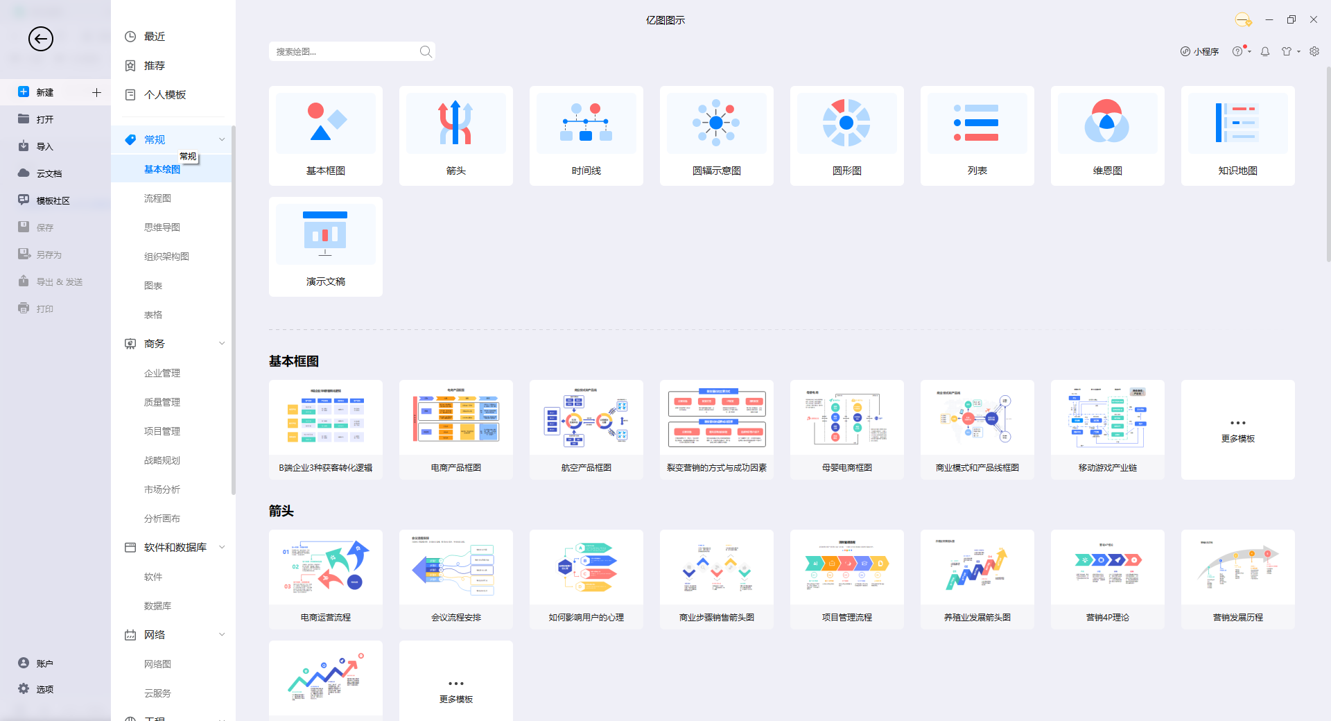 两款软件在入门整体操作方面难度并不高,在现在普遍软件的使用习惯的教学下便能够流畅使用两款软件,再者Visio和亿图图示均内置绘图类型和模板,用户可以简单直接地开启绘图动作。