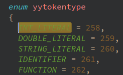 这些在.y文件中定义的token, yacc最终将其定义在生成的.h文件中,例如,被定义成枚举值: