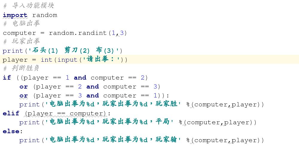 电脑随即出拳--先假定电脑只会出石头,完成整体代码功能