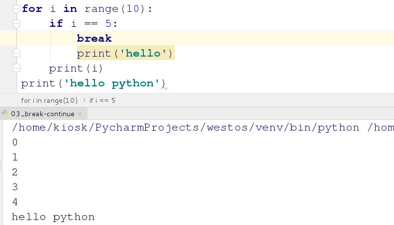 break:跳出整个循环,不会再执行循环后面的内容