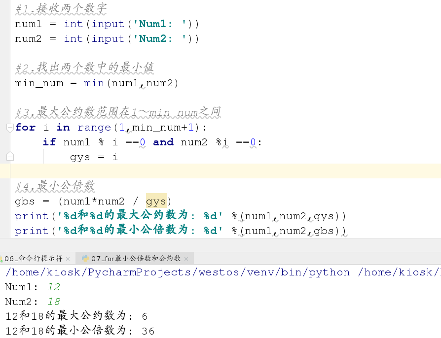 练习4:给出两个数,求这两个数的最小公倍数和最大公约数