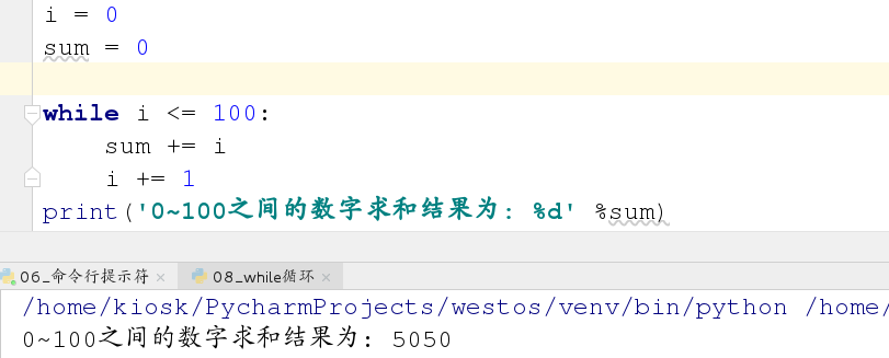 练习1:使用while循环对0~100之间的数字求和