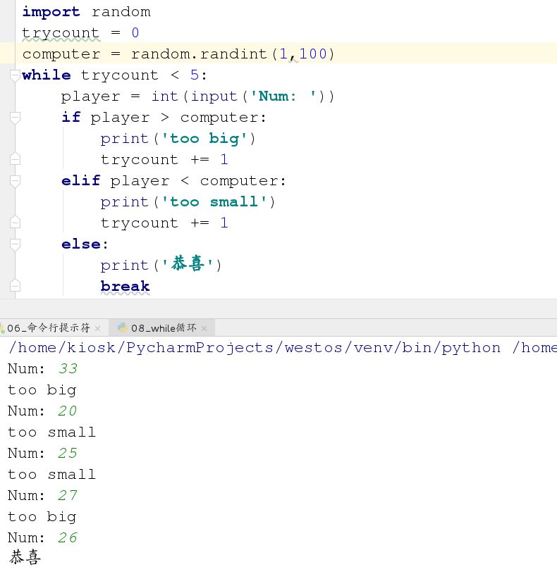 练习5:使用while循环实现猜数字游戏