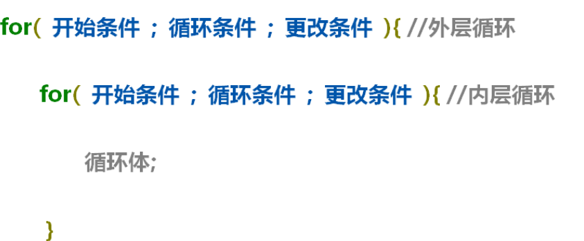 循环语句内部,再写一个或多个循环,称为嵌套循环,一般工作重多见的就是两层。(偶尔会有三层)