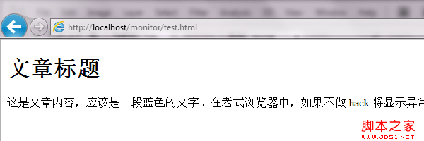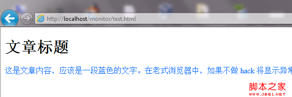 这是文章内容,应该是一段蓝色的文字。在老式浏览器中,如果不做 hack 将显示异常。