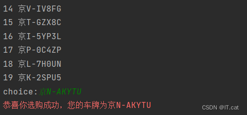 exit(f"恭喜你选购成功,您的车牌为{choice}")