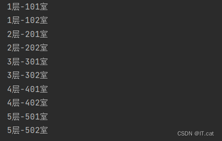 需求:一栋楼有5层,每层2间房,要求把本楼所有的房间号都打印一遍。