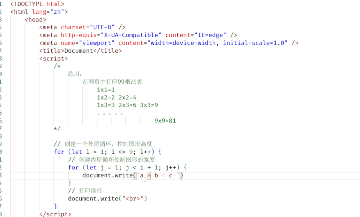 以上就是丰富睫毛最近收集整理的关于js基础笔记学习58-练习1循环嵌套打印九九乘法表的全部内容,更多相关js基础笔记学习58-练习1循环嵌套打印九九乘法表内容请搜索靠谱客的其他文章。