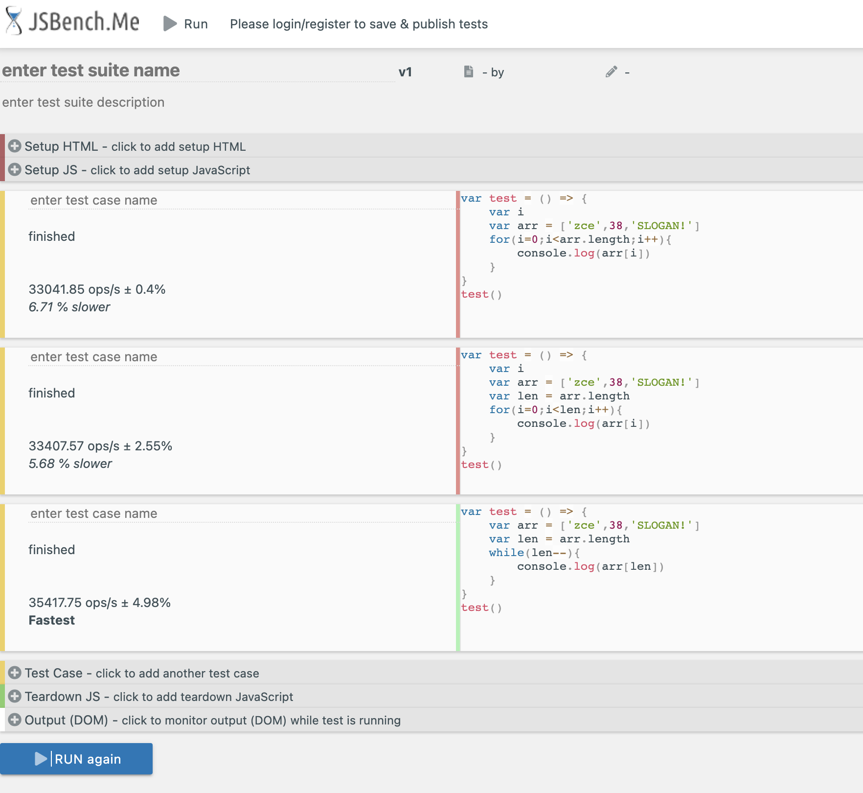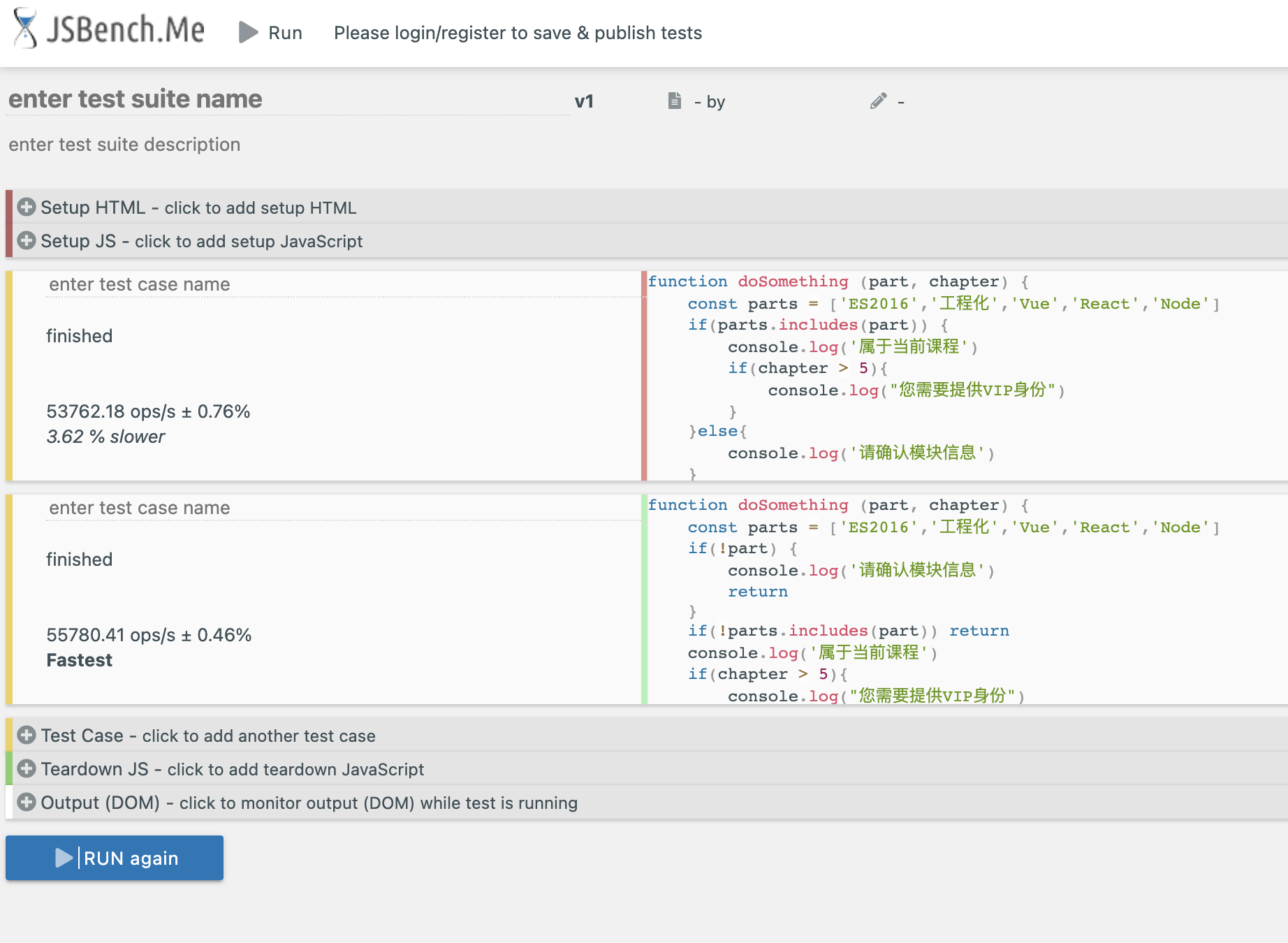 使用JSBench进行性能测试,优化后的稍稍快一些。