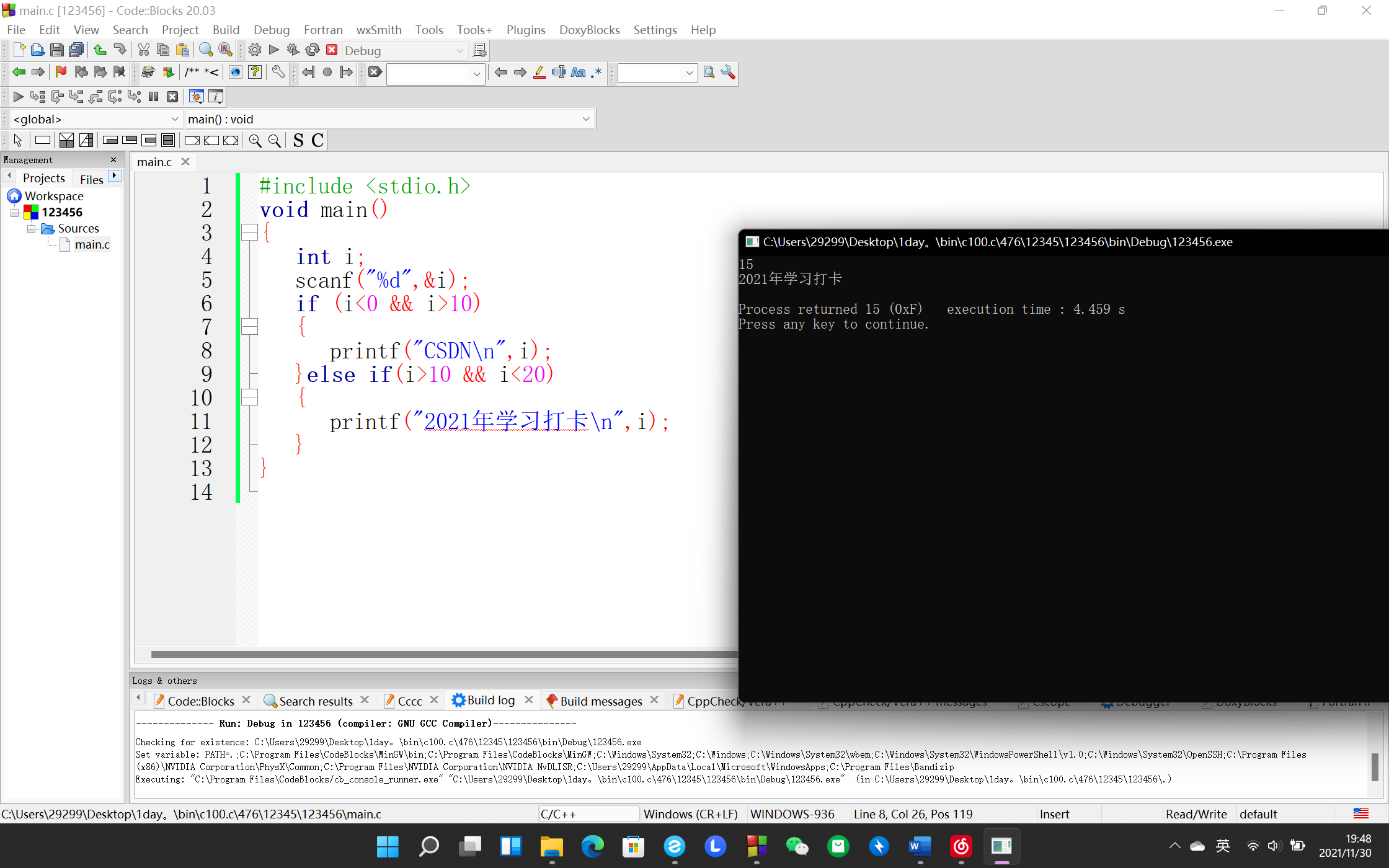 printf("2021年学习打卡n",i);