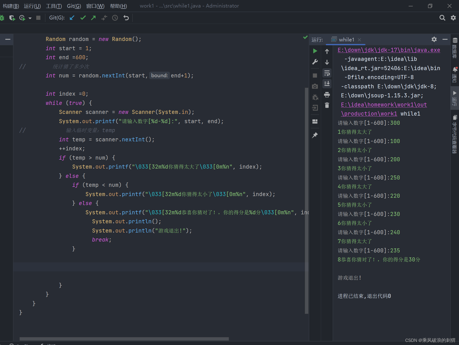 //猜数小游戏