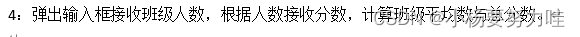 以上就是务实便当最近收集整理的关于Javascript中for循环基础练习题弹出输入框接收班级人数,根据人数接收分数,计算班级平均数与总分数的全部内容,更多相关Javascript中for循环基础练习题弹出输入框接收班级人数内容请搜索靠谱客的其他文章。