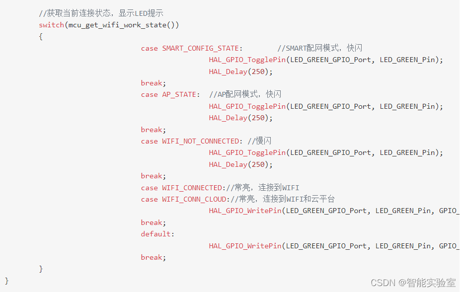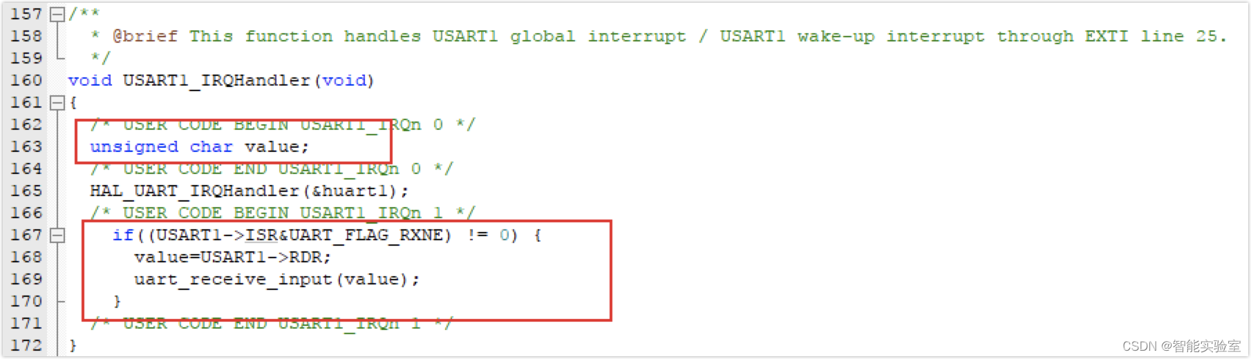 4、在 MCUWIFI 通信板连接的串口的中断服务函数中添加以下代码,注意添加头文件或声明您用到的函数。