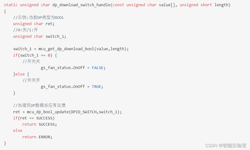 在 protocol.c 文件的 dp_download_switch_handle () 函数中: