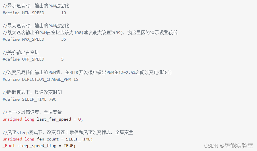 BLDC 板的采样频率是 12M,通过 PWM 占空比的大小来控制电机转速的,输入 PWM 占空比越大转速越快。PWM 占空比越大转速越快,本教程中预设的输出频率为 1000HZ。