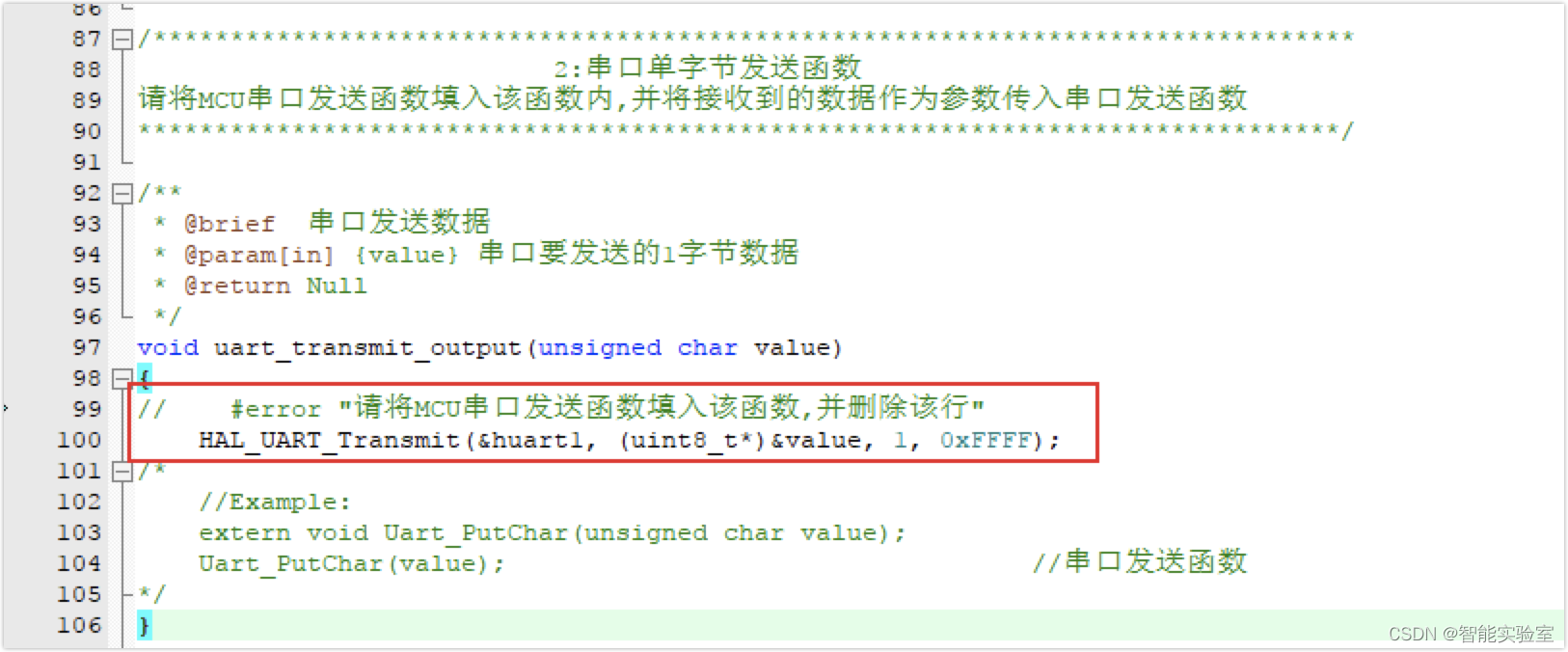 5、将 wifi_uart_service() 函数按照#error 中的提示信息处理,处理后注释掉。
