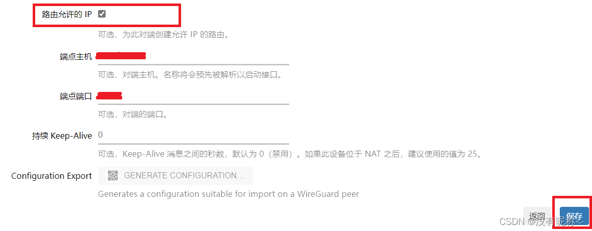 在 “接口 >> WG0 >> 编辑对端” 窗口中,勾选 “路由允许的IP”,并保存。