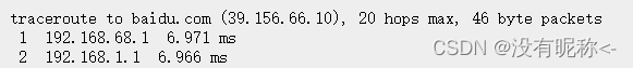 ① 出口为WAN接口的测试结果:观察第1跳,如果为192.168.68.1则表明数据包直接通过WAN接口被转发到了物理机网卡接入的局域网网关。