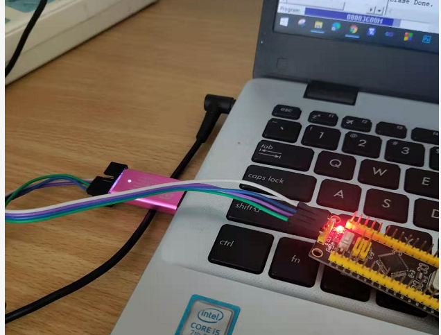 4烧写成功时候的现象,烧录器会灯烁,表示在进行程序烧录(等待几秒的时间)