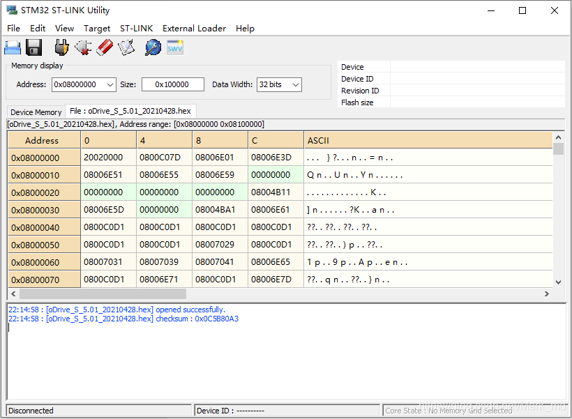 若连接成功,会在下方窗口输出 芯片ID、MCU型号、Flash容量等信息。
