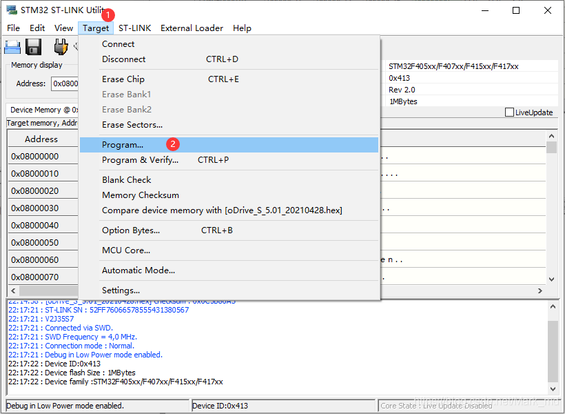 File - Open file,打开要烧录的 HEX 或者 BIN 文件。