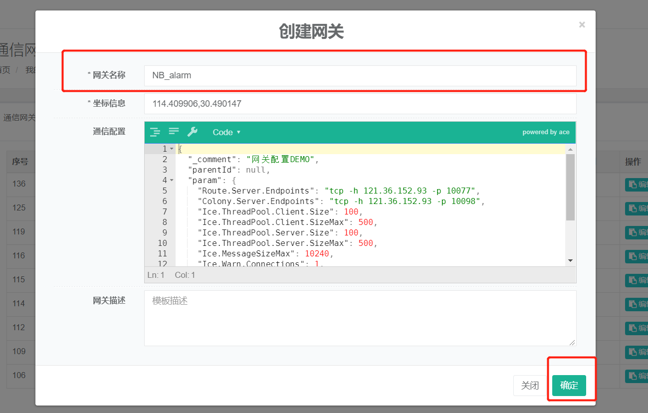 - 填好网关名称后点击确认