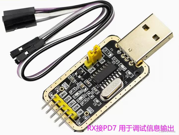 - 修改使用PD7作为调试打印(printf)输出,把调试信息输出到PC上