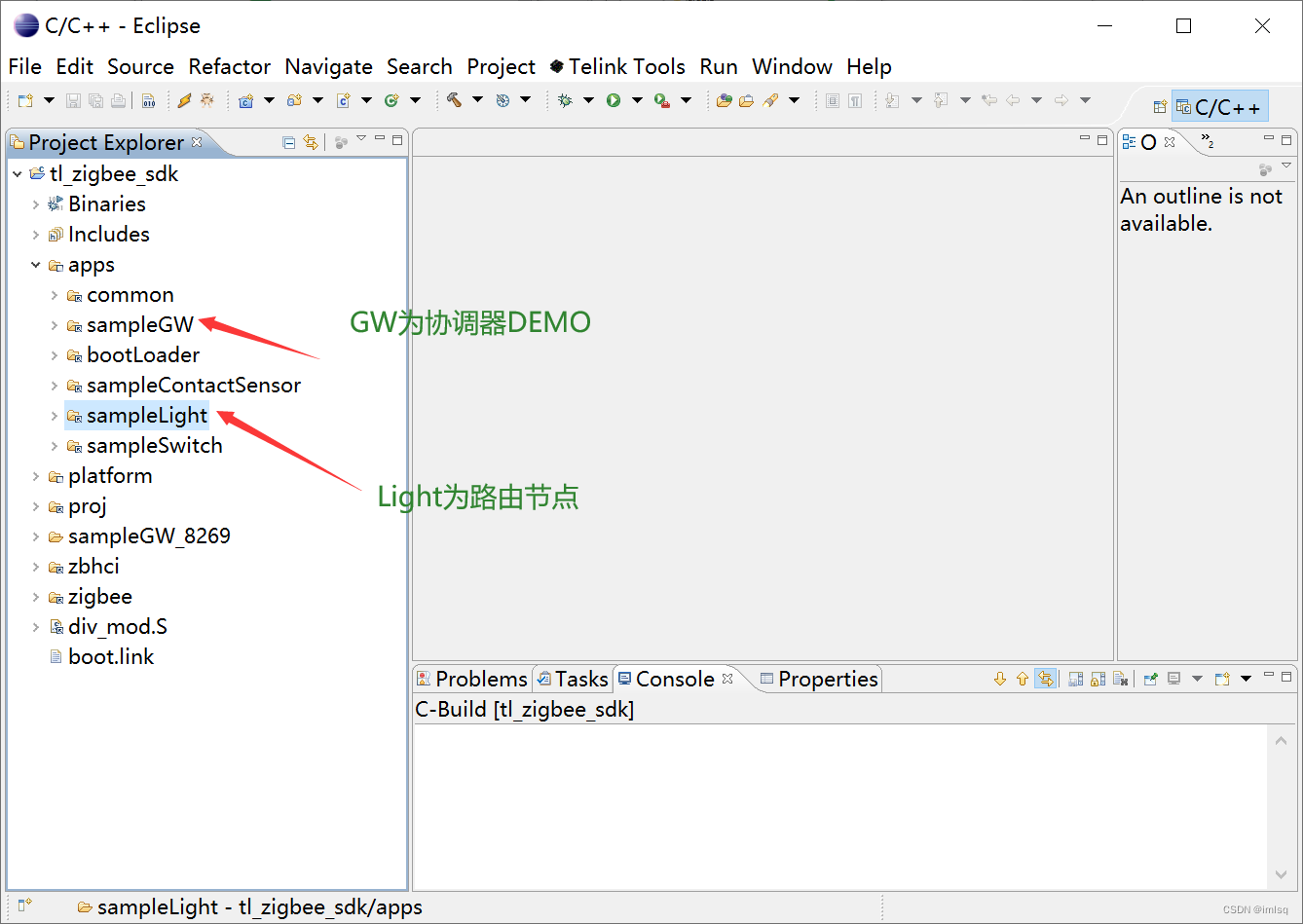 以上就是隐形高跟鞋最近收集整理的关于十分钟入门Zigbee硬件准备开发环境搭建修改代码sampleGW代码修改开启调试打印修改sampleLight节点代码的全部内容,更多相关十分钟入门Zigbee硬件准备开发环境搭建修改代码sampleGW代码修改开启调试打印修改sampleLight节点代码内容请搜索靠谱客的其他文章。