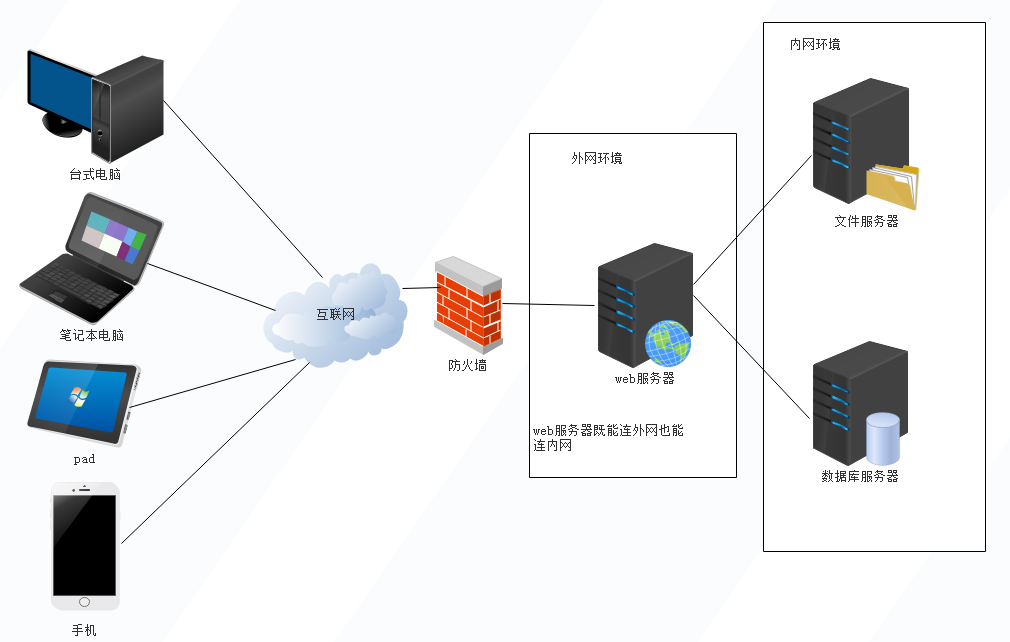 一般在用户量不多,应用使用频率不高,数据量不太大,业务场景相对简单情况下,单台服务器就可以满足使用。也就是一台服务器上只运行应用容器(如tomcat)和数据库,让系统运行起来,用户能通过网络访问即可,单台服务器不存在应用于数据库网络连接问题,因为应用和数据同在一台服务器,完全的"本地"环境;当然应用访问压力和数据负载压力都由一台服务器承担。其实这种完全单台的情况,一般都用于测试环境或者开发环境,再简单的生产环境至少再多一个灾备服务器会显得更优雅。