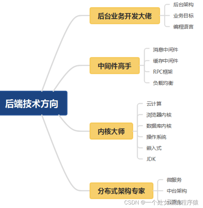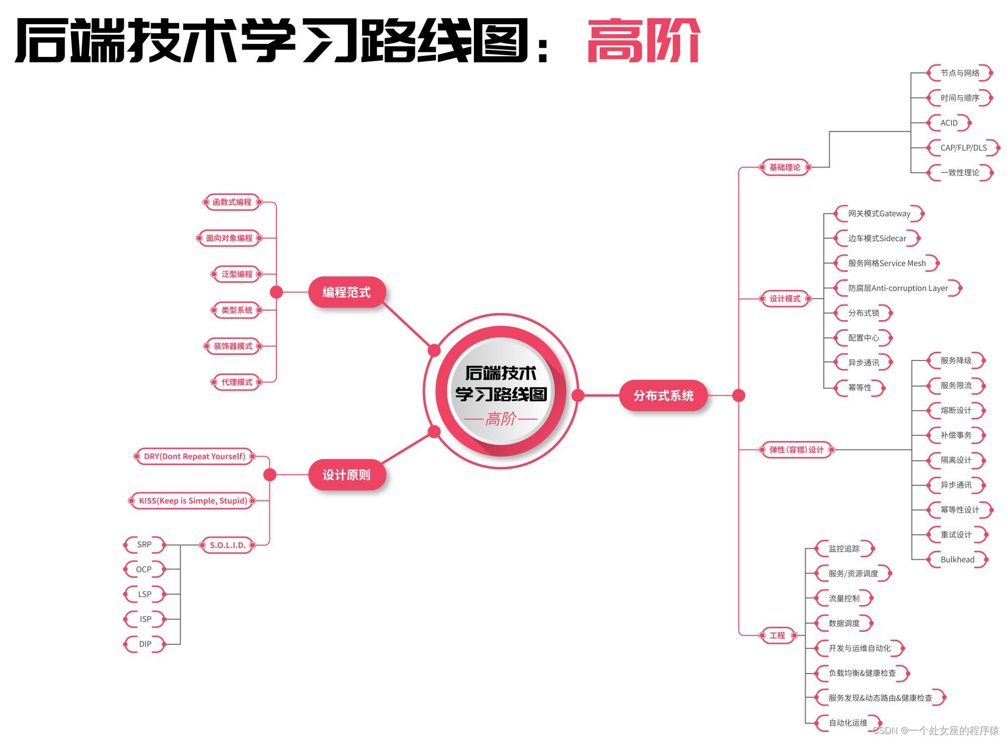以上就是默默中心最近收集整理的关于IT:后端进阶技术路线图(初级→中级→高级)、后端开发工程师(技术方向分类之后台业务开发/中间件/内核/分布式架构)基础知识简介、技术路线/技术趋势指南(如何选择自己的技术方向)之详细攻略后端进阶技术路线图(初级→中级→高级)一、后台业务开发大佬——后台架构/业务目标/编程语言的演进二、中间件高手——消息中间件、缓存中间件、RPC框架、负载均衡三、内核大师——探究底层奥秘:云计算、浏览器内核、数据库内核、操作系统、嵌入式、JDK四、分布式架构专家——中台架构、微服务、云原生的全部内容,更多相关IT:后端进阶技术路线图(初级→中级→高级)、后端开发工程师(技术方向分类之后台业务开发/中间件/内核/分布式架构)基础知识简介、技术路线/技术趋势指南(如何选择自己内容请搜索靠谱客的其他文章。