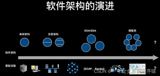 1.1、后台技术架构演进:局域网→广域网→单体多层架构→SOA/EDA →虚拟机→云计算→微服务→云原生