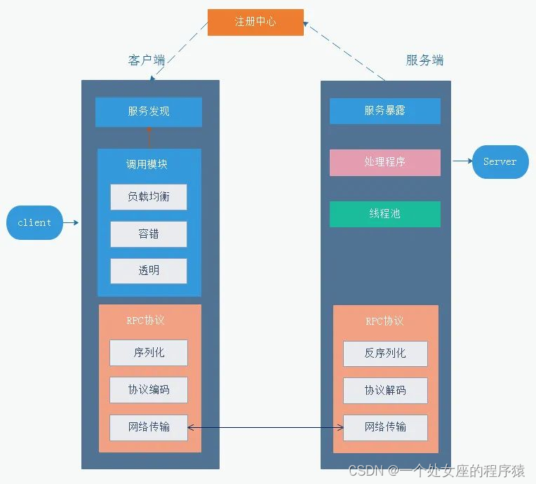 RPC远程过程调用协议,Remote Procedure Call Protocol,允RPC是指远程过程调用,也就是说两台服务器A,B,一个应用部署在A服务器上,想要调用B服务器上应用提供的函数/方法,由于不在一个内存空间,不能直接调用,需要通过网络来表达调用的语义和传达调用的数据。