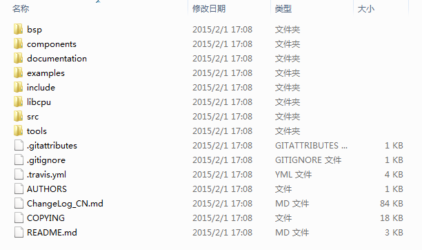 在官网http://www.rt-thread.org/下载RT-Thread v2.0.0正式版,解压后: