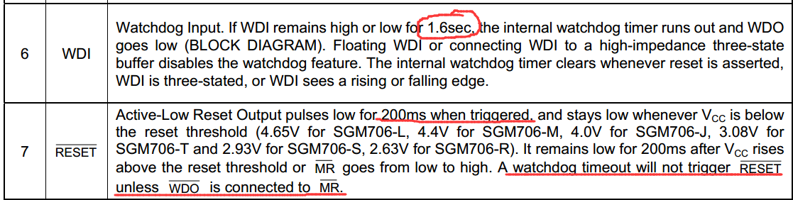 使用外部自带看门狗功能的芯片进行复位的,必须给其喂狗,这个芯片才会正常工作,不输出复位信号。说明如下: