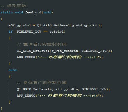 APP_DEBUG("<-- 外部看门狗喂狗 -->rn");